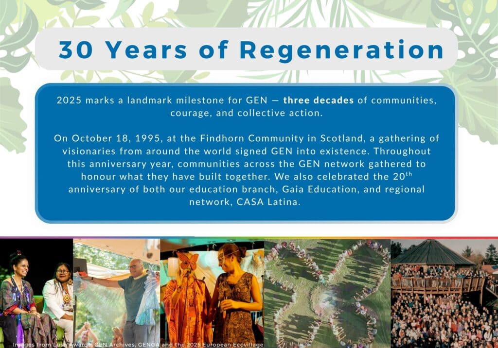 In 1995, a small network of communities dared to imagine a world built on cooperation, ecology, and shared purpose. Three decades later, the Global Ecovillage Network spans every continent — a living proof that another way of life is not only possible, but already here.