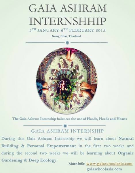 Gaia Ashram in Nongkhai, Thailand is offering a month-long internship program. The internship will focus on Natural Building, Personal Empowerment, Deep Ecology and Organic Gardening. With facilitation from two most experienced teachers viz. Om Sunisa and Tom Dieters, you will figure out ways to evolve together.